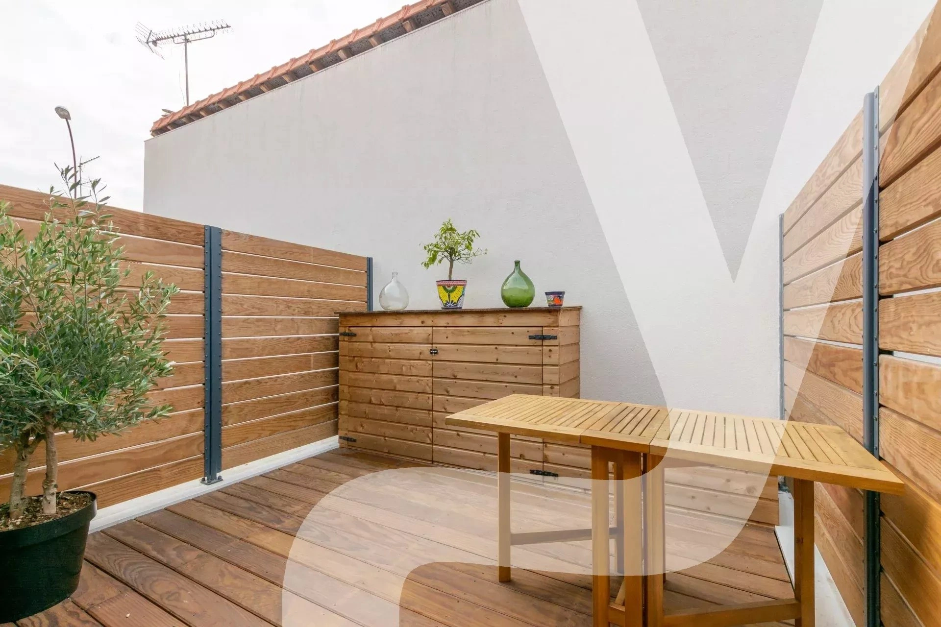 La terrasse, véritable joyau de l'appartement, est un havre de paix baigné de lumière.