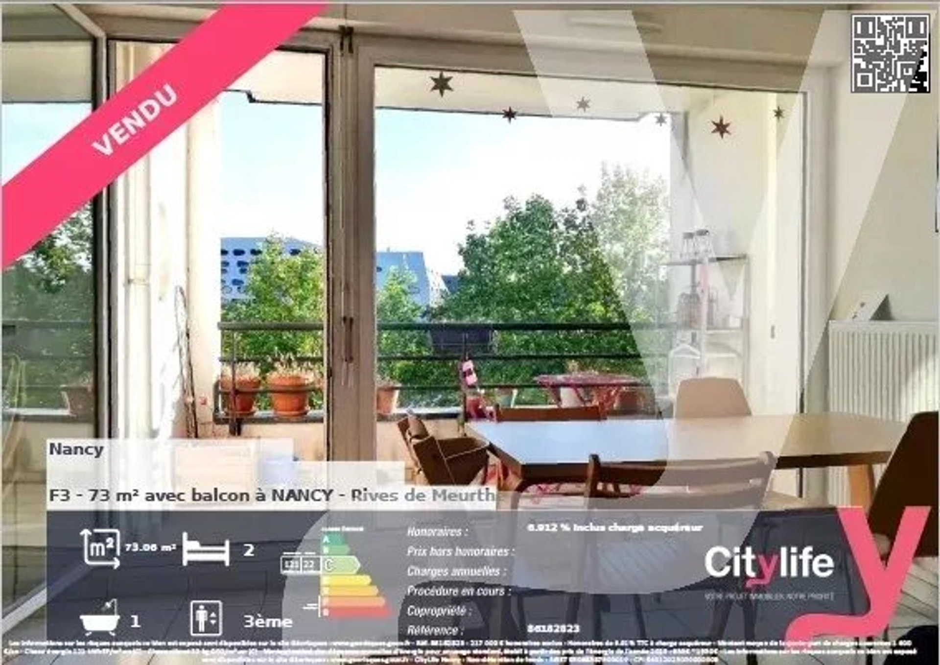 F3 - 73 m² avec balcon à NANCY - Rives de Meurthe - 54000 Nancy - Réf 86182823