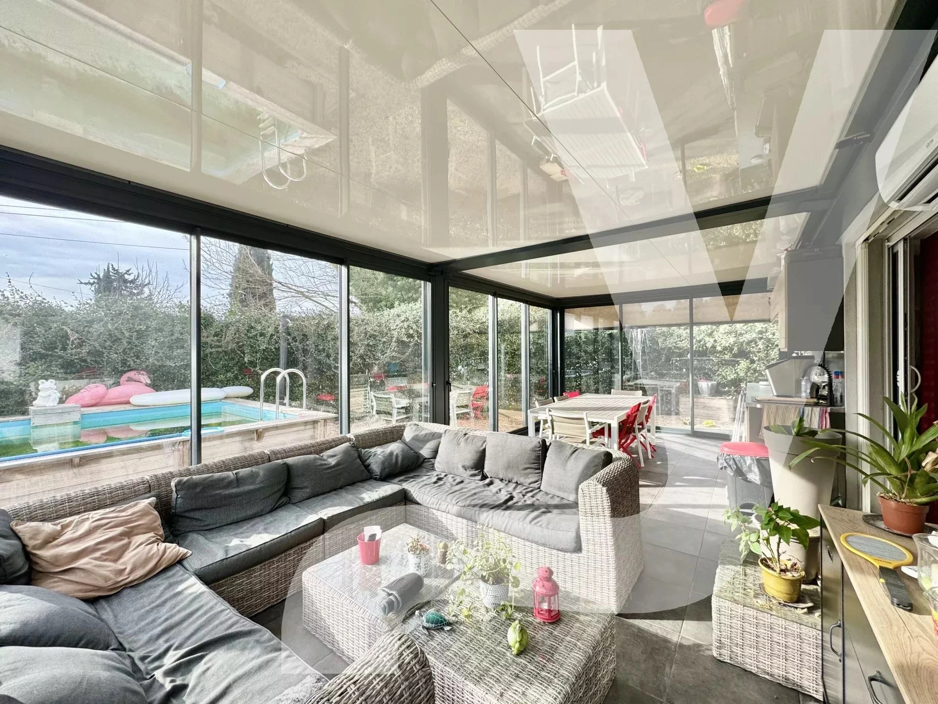 Cette maison de 150 m² exposée plein Sud, vous offre au rez-de-chaussée un espace de vie convivial, comprenant un séjour spacieux, une cuisine aménagée et équipée, ainsi que deux chambres dont une avec salle d'eau et toilettes proposant une intimité appréciable. Pour compléter ce premier niveau, vous disposerez d'une véranda climatisée en aluminium dotée d'une cuisine d'été et de baies vitrées rétractables, présentant une luminosité abondante et une transition parfaite entre intérieur et extérieur.