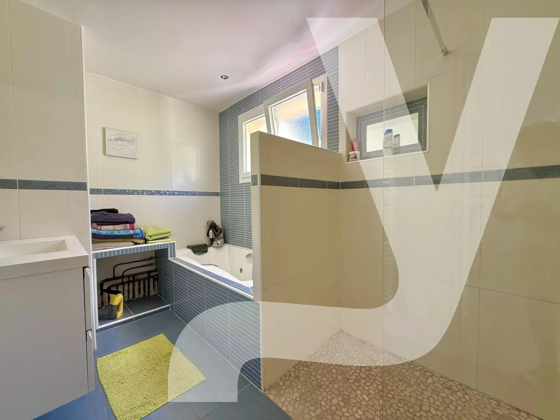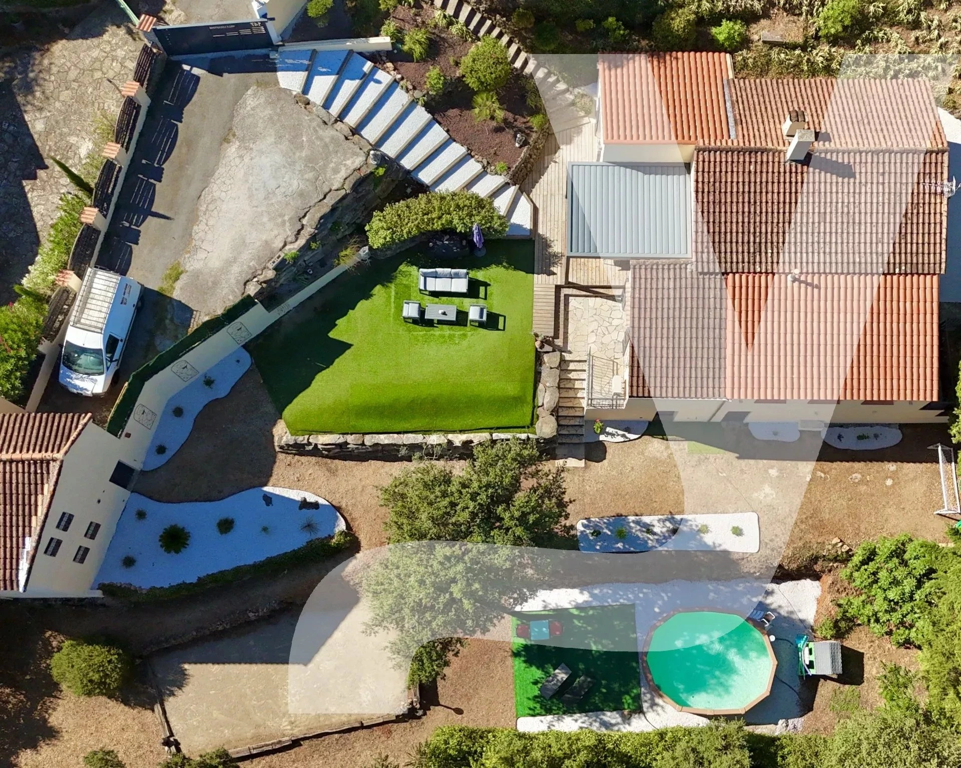 Le terrain de 1290 m² est entièrement aménagé avec sa terrasse ombragée grâce à sa pergola aluminium et éclairage LED, piscine hors sol, terrain de pétanque, dépendance de 15 m² (avec eau et électricité), deux caves et un garage indépendant.