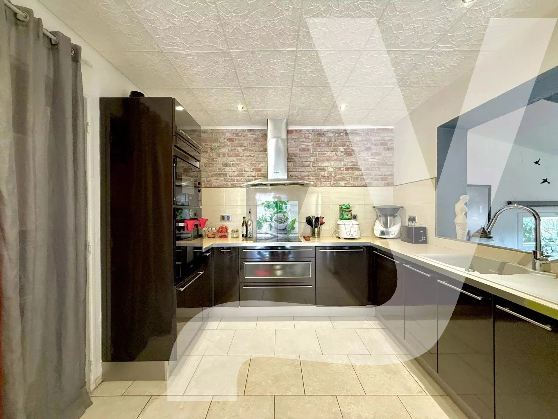 Dès l’entrée, vous découvrirez un espace de 18 m², modulable selon vos envies : coin lecture, bureau, bibliothèque, ou salle de jeux. Il mène à une cuisine moderne entièrement équipée, ouverte sur un séjour lumineux avec plafond rampant, poêle à granulés, système audio intégré et accès direct à la terrasse.