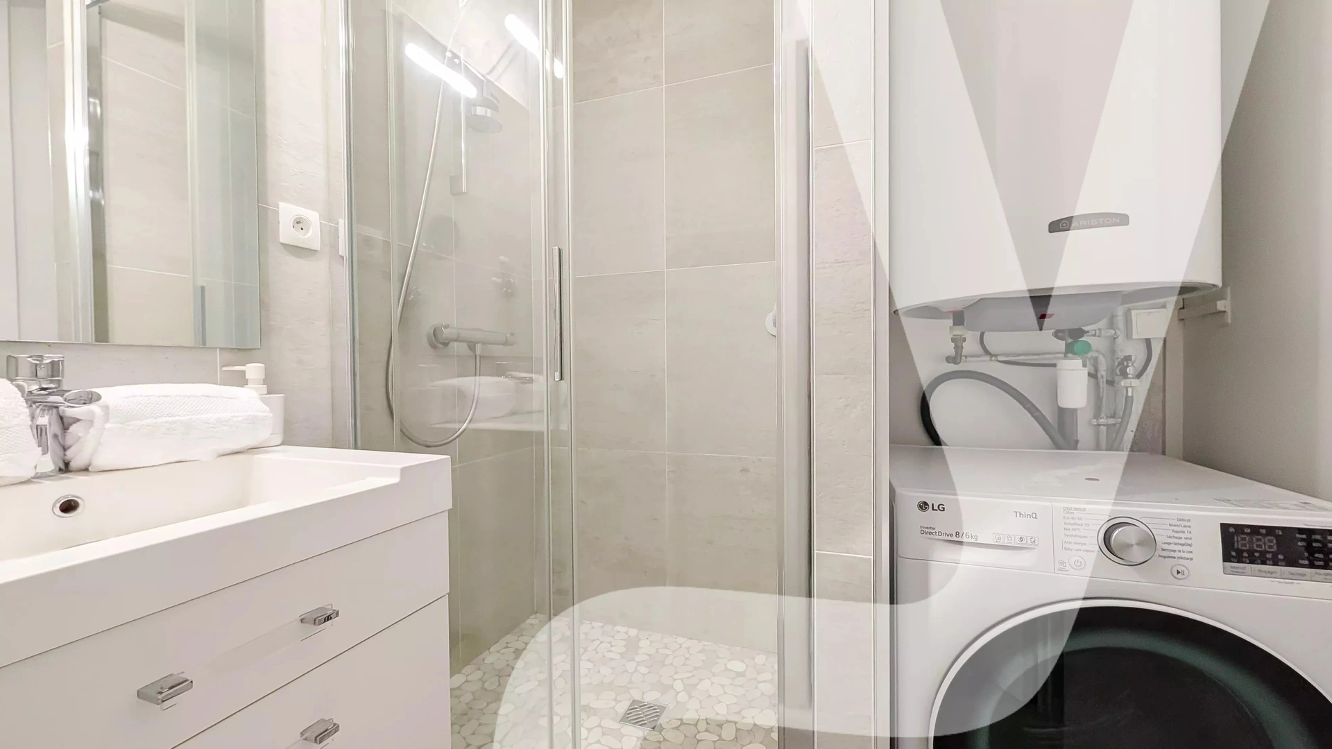Centre-ville 500 m – Gare TGV 50 m – Plage 400 m – Commerces et cinéma à pied.