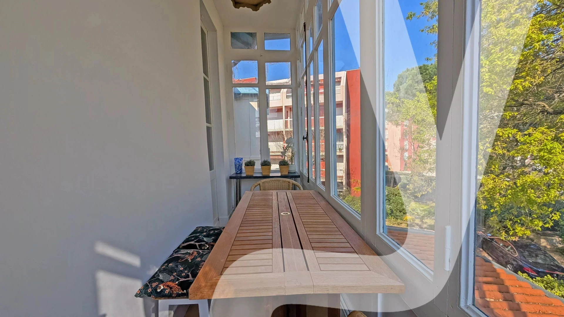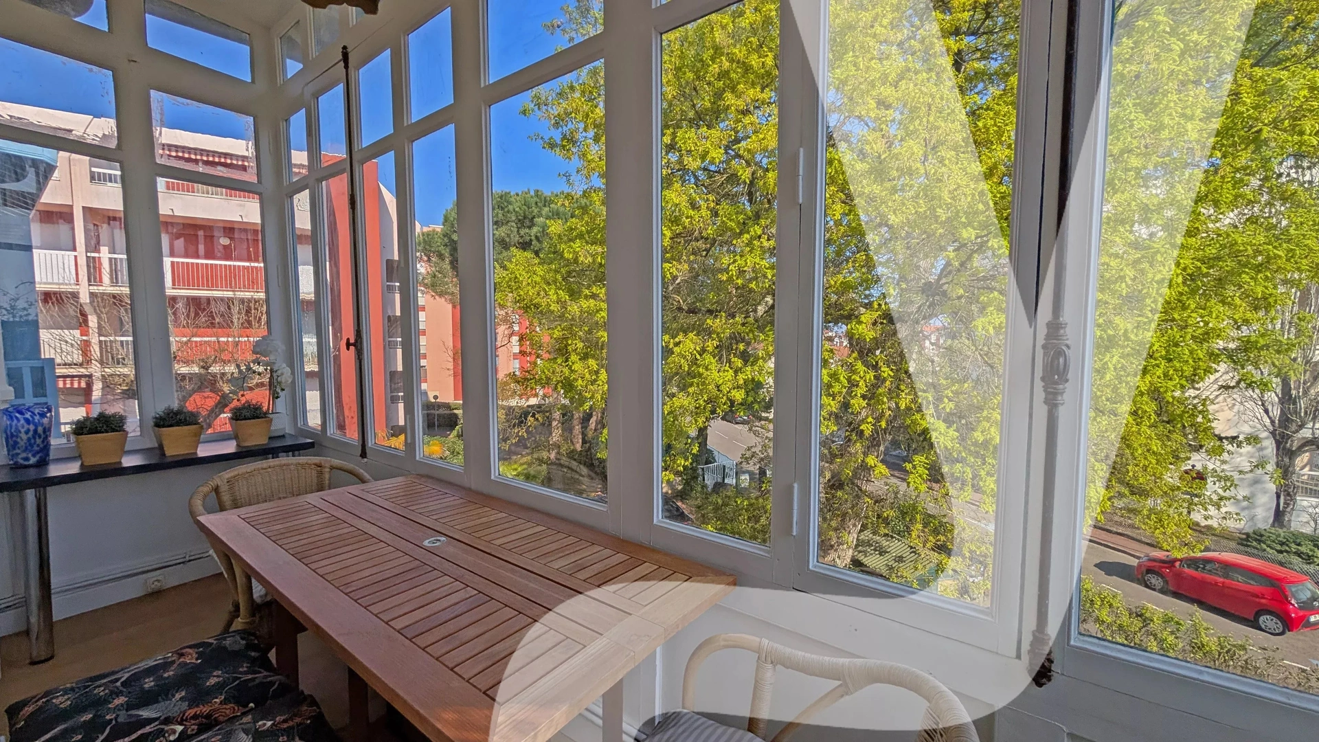 Vous profiterez d’un agréable balcon fermé côté Nord (type bow-window) ainsi que d’un balcon exposé plein Sud avec vue sur le jardin. Une place de parking complète ce bien.