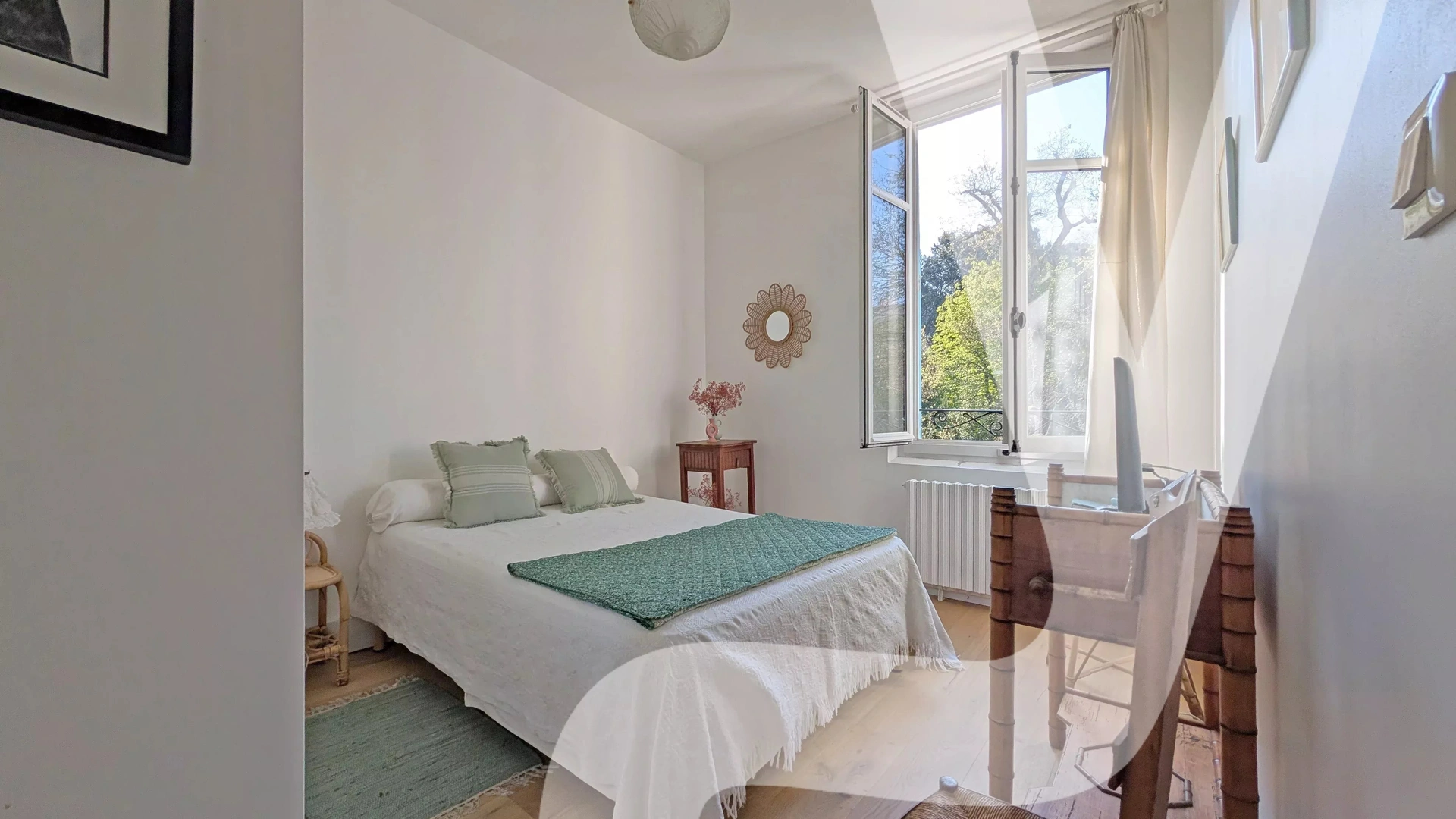 Nichée au sein d’un magnifique parc arboré, la villa, dont les extérieurs ont été entièrement restaurés, offre un cadre de vie paisible et verdoyant.