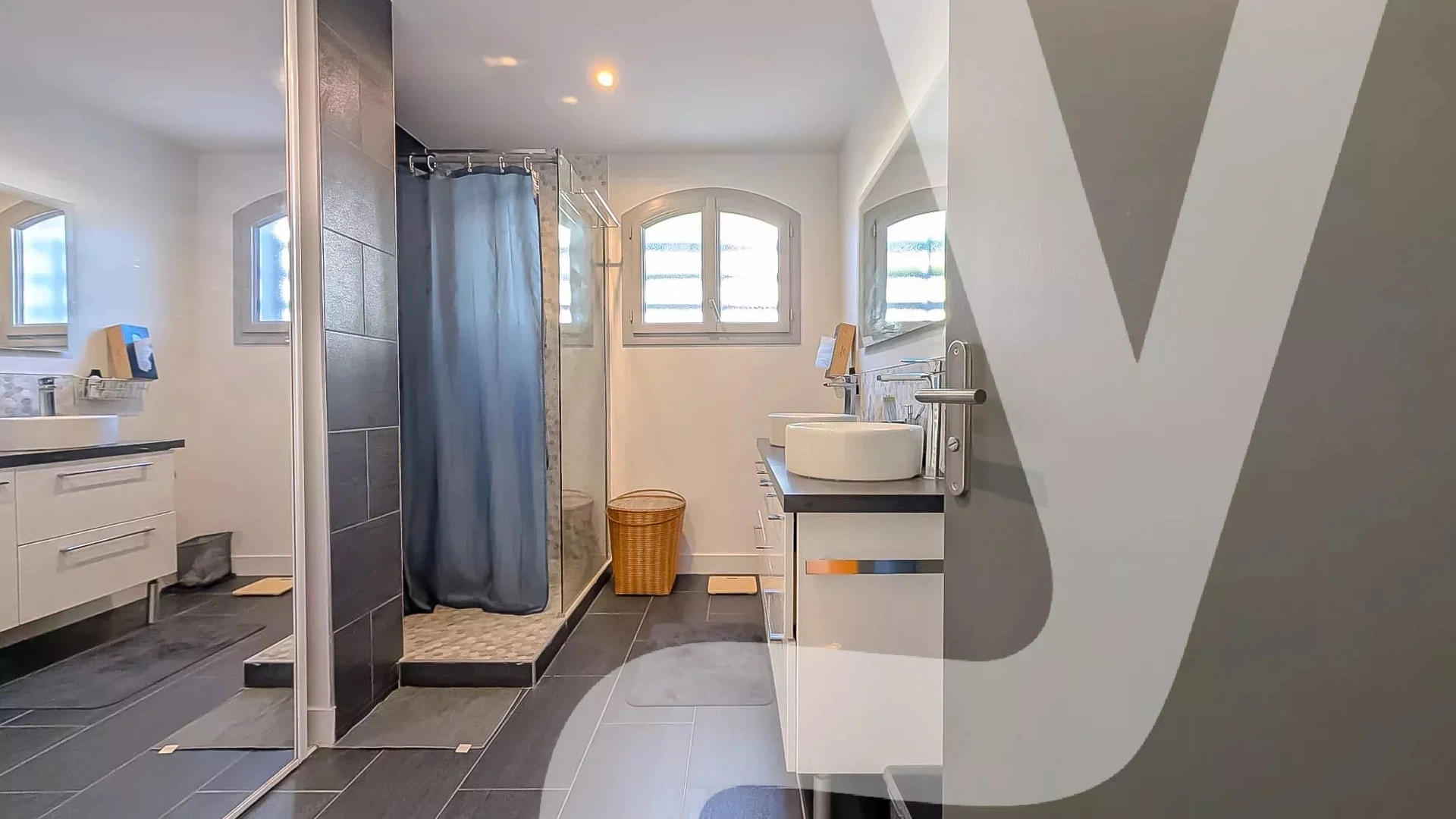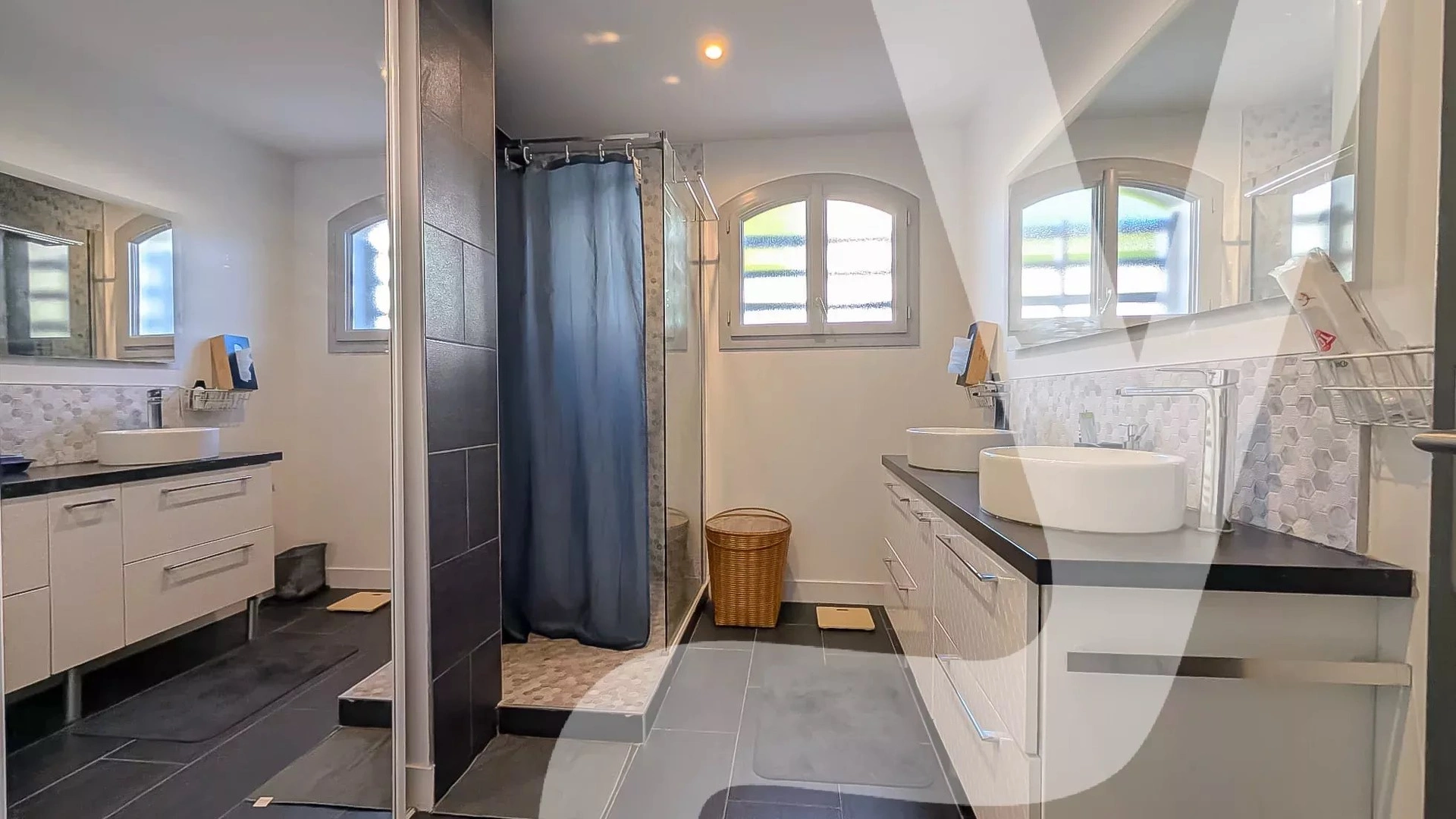 Grande salle d’eau avec double vasque et rangements
