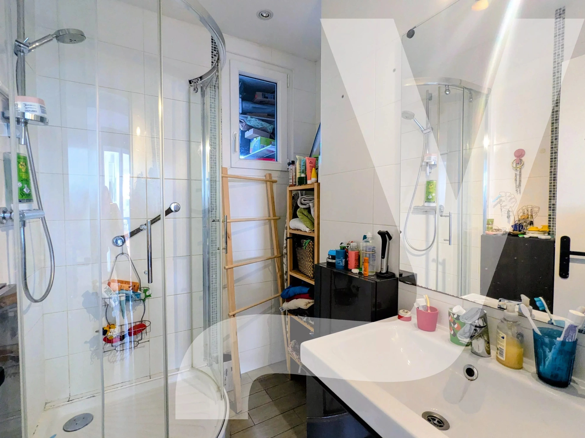 La salle d’eau est fonctionnelle et soigneusement aménagée, tandis que les WC sont séparés.