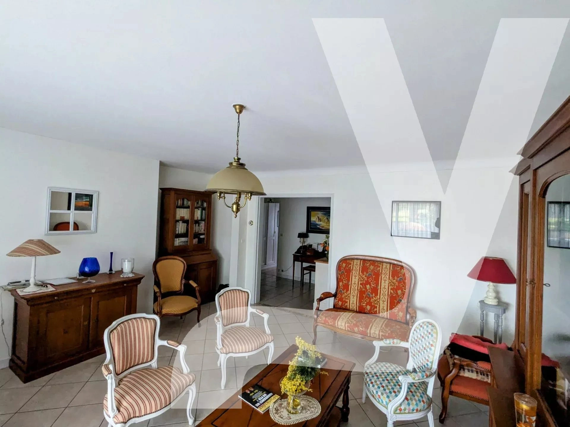 Le salon-séjour spacieux et baigné de lumière offre une vue imprenable sur le Parc de Procé.