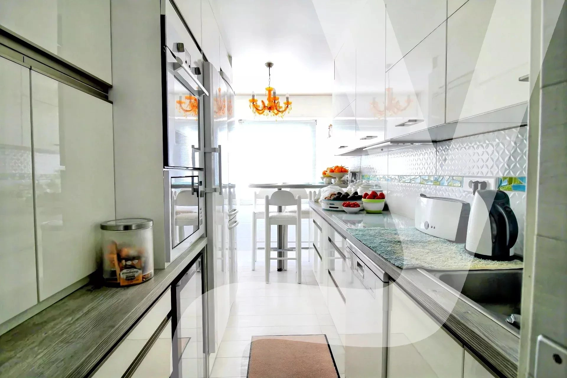 - d'une cuisine séparée, fonctionnelle et conviviale, tout en gardant la possibilité de s'ouvrir sur le reste de la pièce à vivre grâce à un mur non porteur.