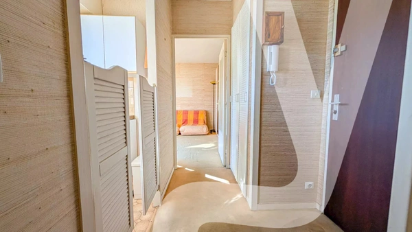 L’espace nuit, accessible par un dégagement, dessert des WC séparés et une salle d’eau, tous deux entièrement rénovés, puis une chambre de 11,21 m² dotée d’un placard intégré. Cette dernière bénéficie également d’un accès direct au balcon, prolongeant agréablement l’espace de vie vers l’extérieur.