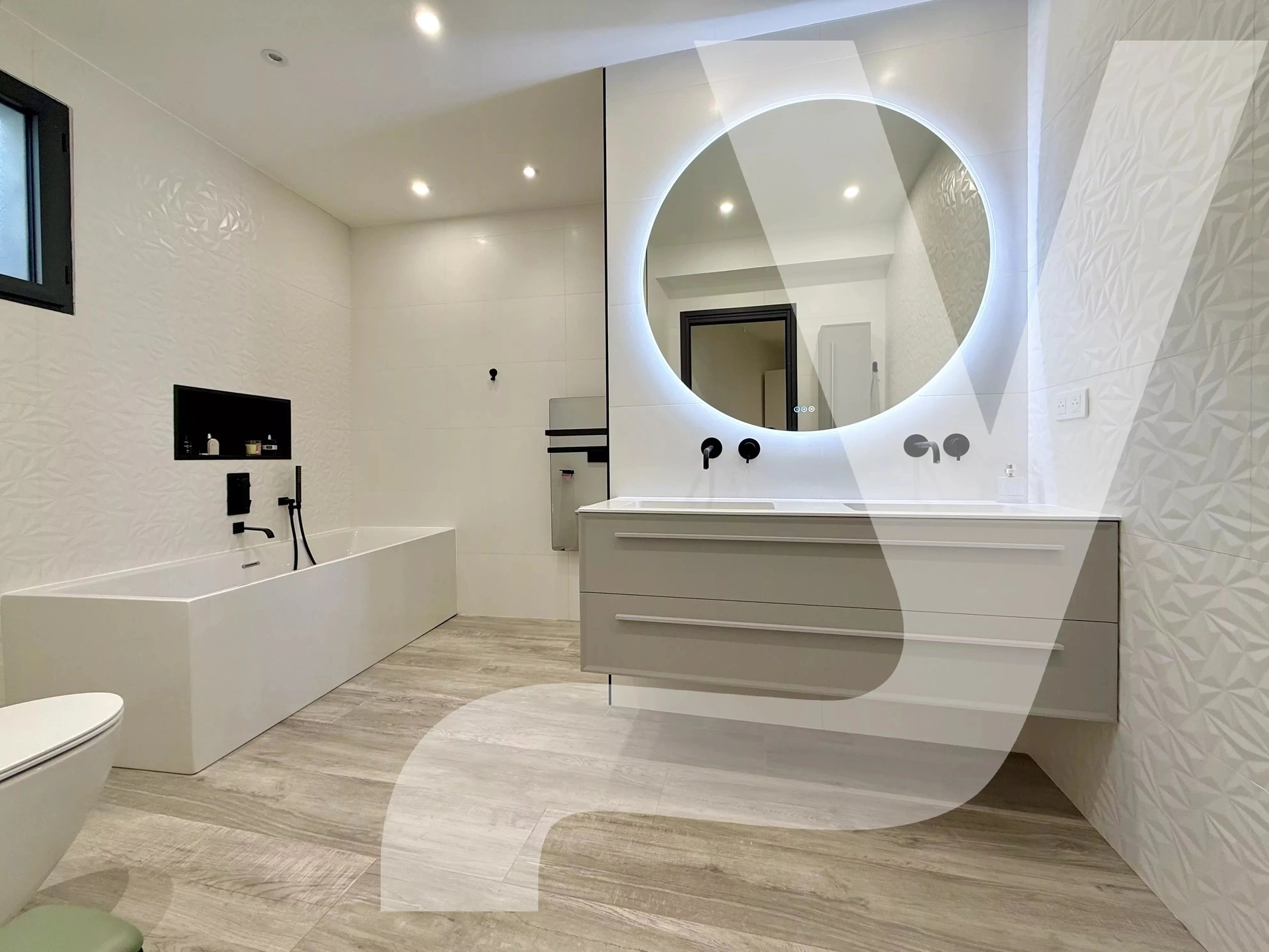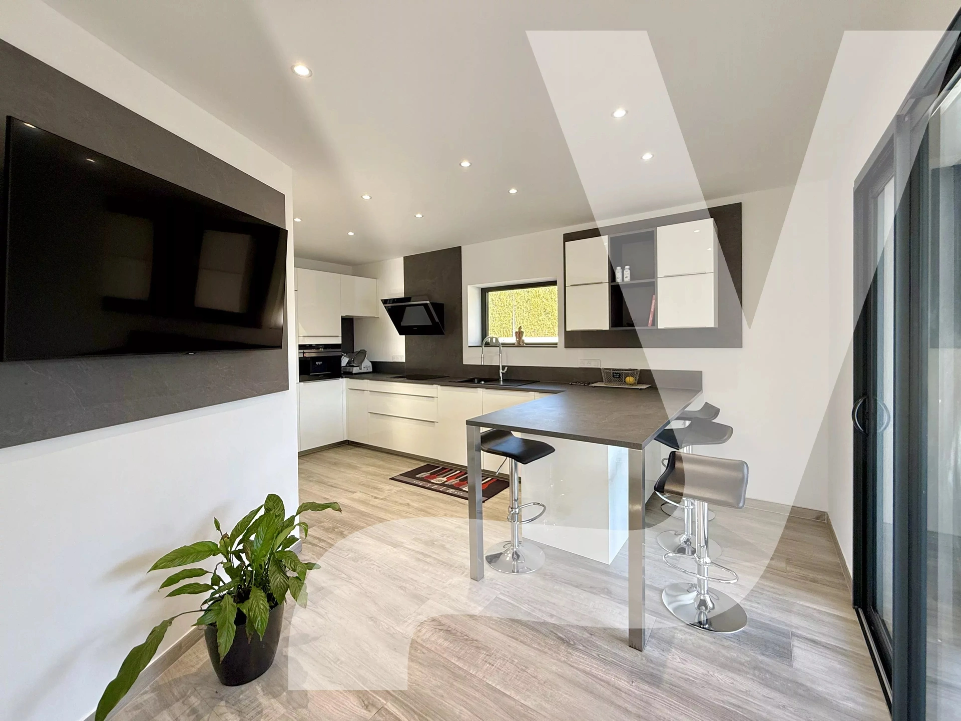 L’extérieur dispose d’une piscine chauffée un solarium et une cuisine d’été, tandis que les équipements modernes tels que le chauffe-eau thermodynamique, les caméras extérieures et l’arrosage automatique. Un grand garage carrelé, équipé d’une prise pour véhicule électrique, complète ce bien aux prestations soignées, alliant modernité, confort et tranquillité.