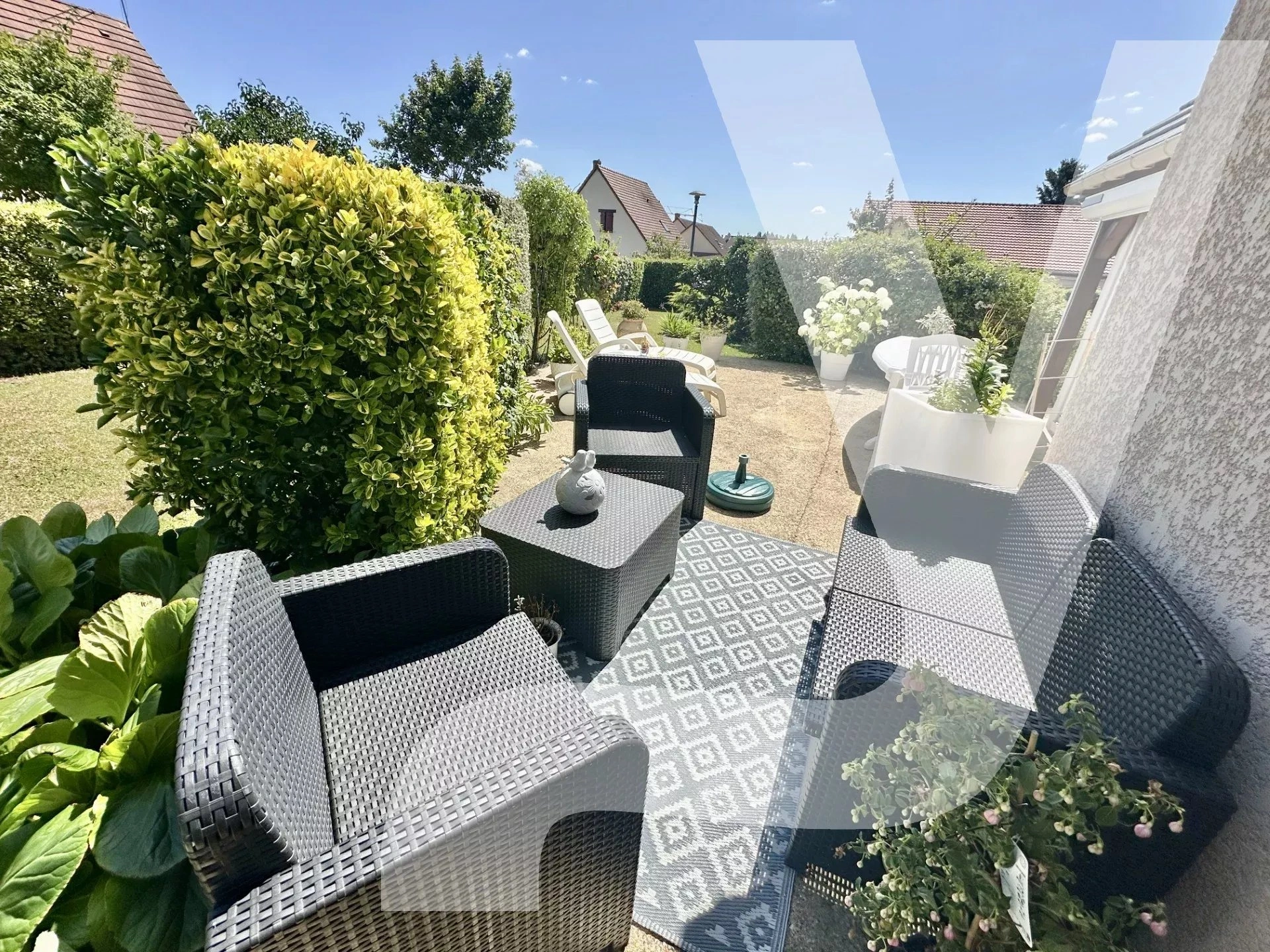 A l’extérieur, un garage assure le stationnement sécurisé de votre véhicule. L’ensemble de la propriété est sécurisé avec un système d'alarme et un portail électrique, garantissant tranquillité d’esprit et privacité totale. Cette maison est une opportunité rare à saisir rapidement.